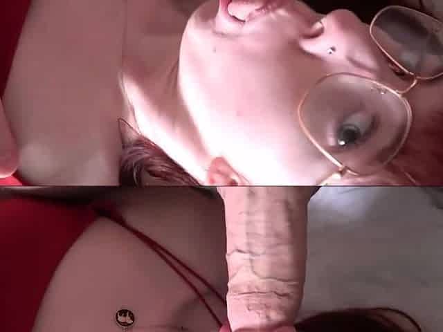 Nerdy girl Mandy Rhea sucks that hard cock like a pro