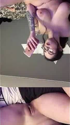 Nerdy girl with glasses rubs her pussy and fucks a guy