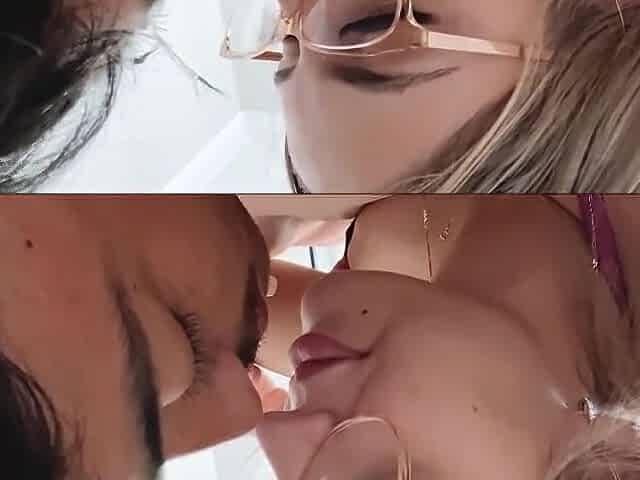 Nerdy blond cutie with glasses is wearing erotic underware whilst grinding against her married neighbour
