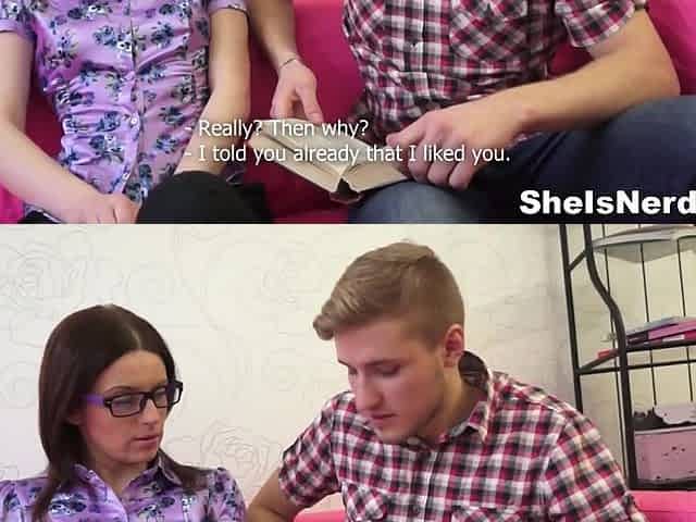 Elena & Mark in Nerdy Sexy Gets Excited - CasualTeenSex, How do you get a cute nerdy chick to have sex with you? Show her your b