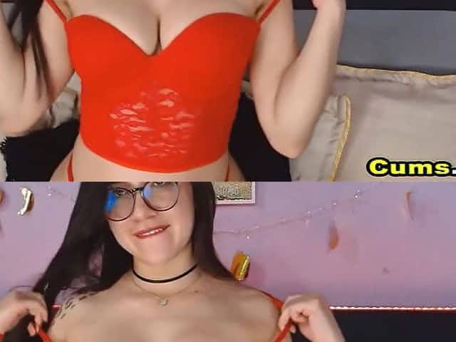 Nerdy brunette hair, Amiee Cambridge is wearing glasses whilst masturbating in front of the web camera