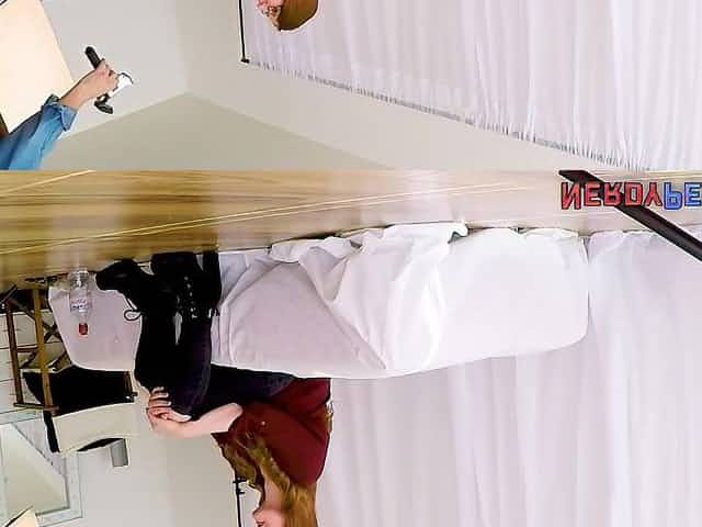 Red haired honey is screwing a nerdy dude, whilst his wife is out of city