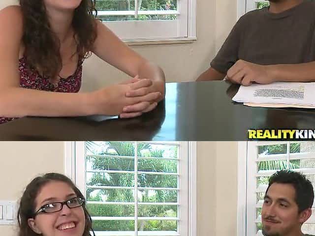 Nerdy and horny petite selling her ring gets her tight pussy fucked
