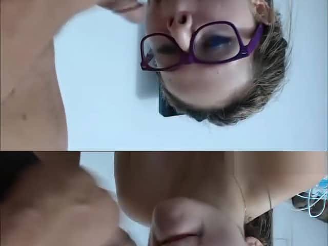 Sexy nerd Miss-Alise SLOPPY BLOWJOB CUM on glasses