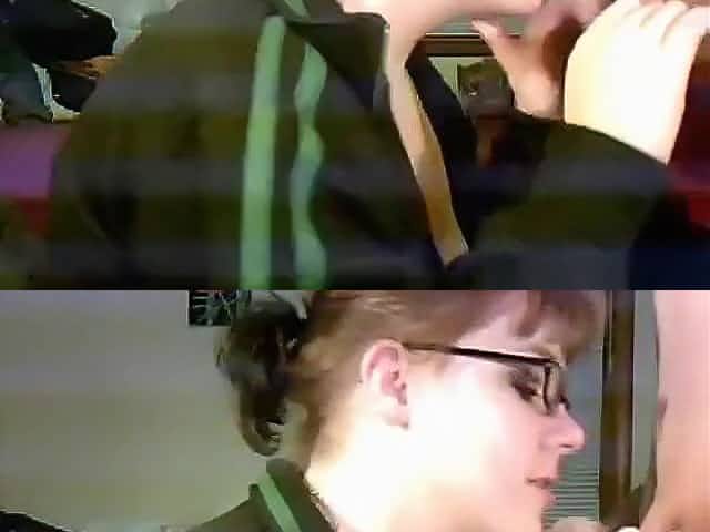 Hot nerdy glassed emo girl blows her bf's cock on cam