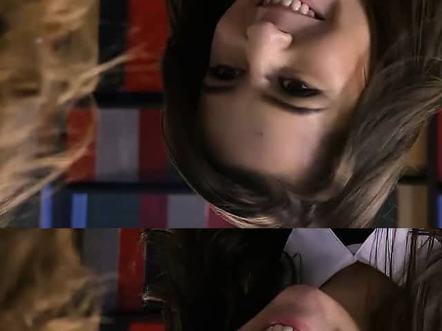 Tiny nerdy schoolgirl fucked in the library by another nerd