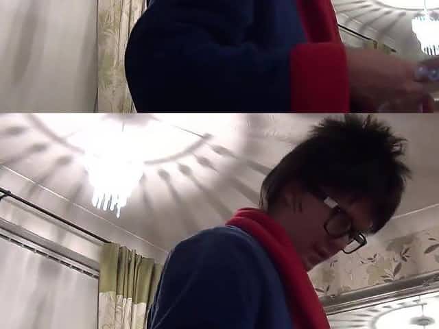 Nerdy glasses girl blows in the gloryhole