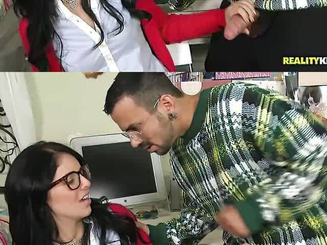 Riley Rose in glasses and nerdy-chic at the gloryhole