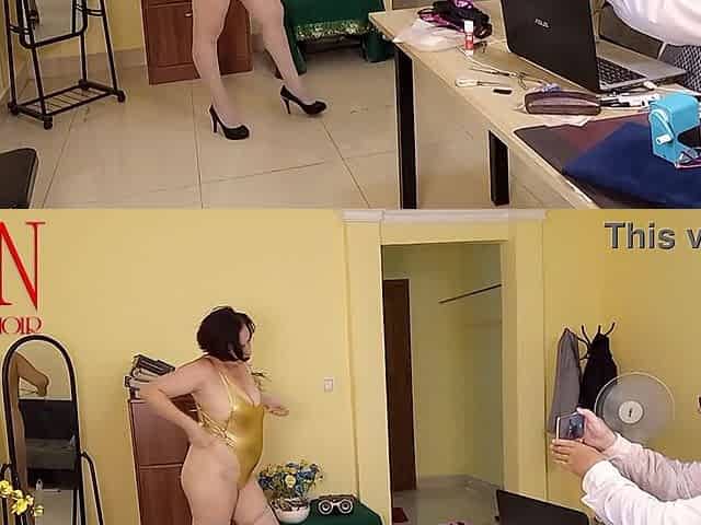 Yoga time in the office. Regina Noir. Scene two