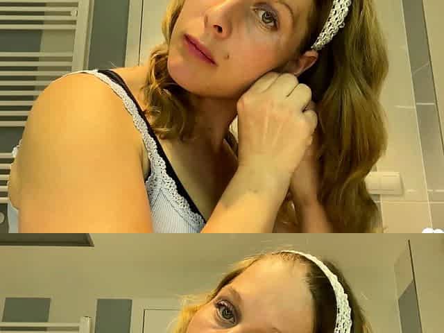 Playing with my constricted virgin cunt whilst roommate is next door