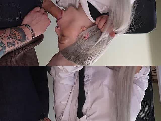Amateur Brunette hair Sucks Large Ramrod Twice & Cum In Throat