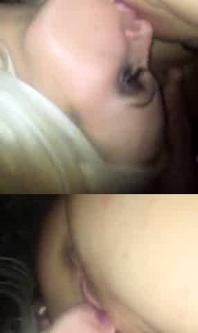 Amateur adorable blonde and brunette girls doing blowjob