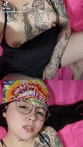 Wet tattooed raven babe Sahron with big boobs masturbates