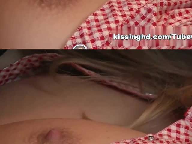 Stunning blonde has lesbian snogging session with big boobs teen