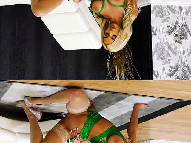Big taco blonde in stockings close up