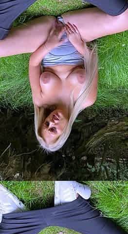 Shaved pussy blonde Tasha Reign with big boobs goes solo