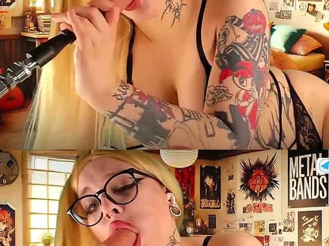 Blonde with Big Boobs Gives Blowjob to Her Dildo on Liv more