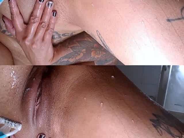 Sucking on two of my brushes with tit play! Coz sometimes two is more excellent than 1!