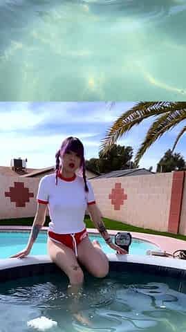 Ash-blonde cutie Wowmarie has fun playing with her nipples and dousing her panties
