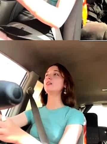 Artemisia Love driving around and showing her large hard teats