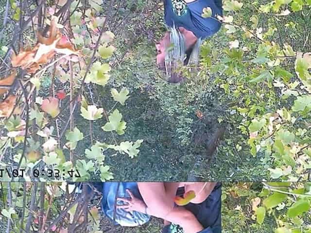 Blonde is flashing her big boobs in the outdoors