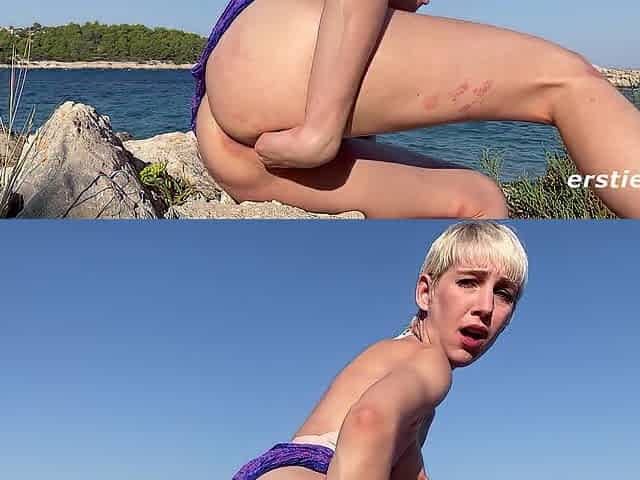 Ersties - Cute Golden-haired Annika Fingers Herself Outdoors For All To Watch
