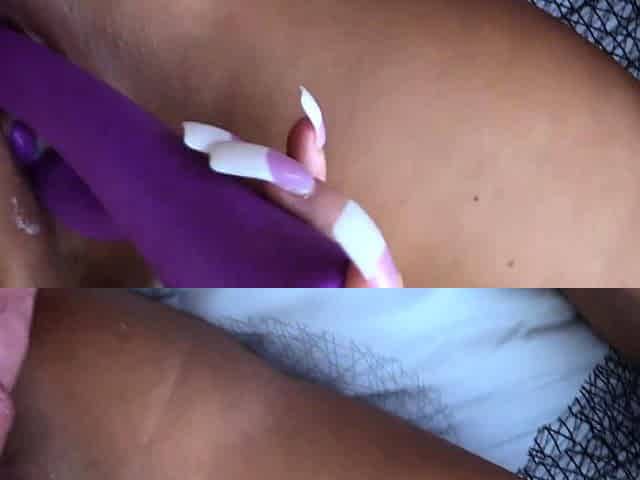 pleasant cutie plays with ebony sex tool