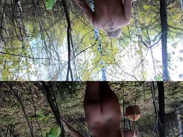 Nude Blonde Picks Mushrooms in the Russian Forest