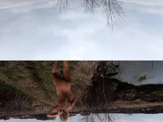Nude Blonde Walks in Autumn Village