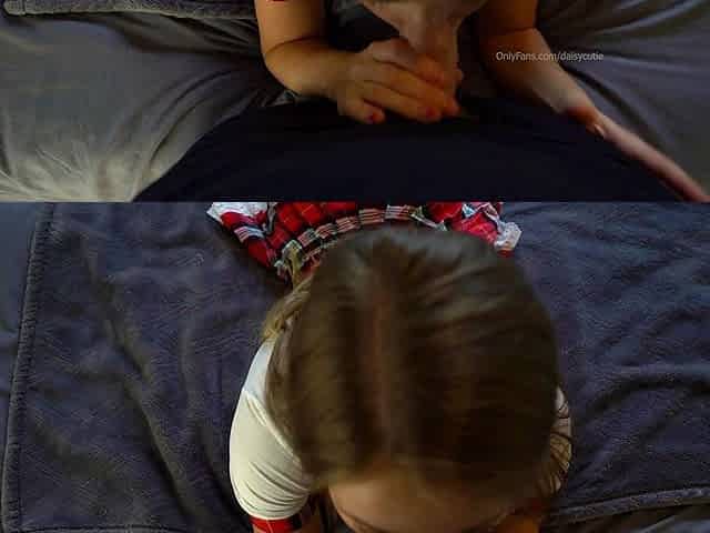 Close up POV of teen sucking cock