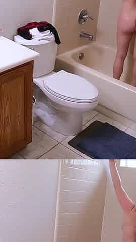 Stepmom getting ready to shower catches stepson watching and masturbating and wants his hard cock in her