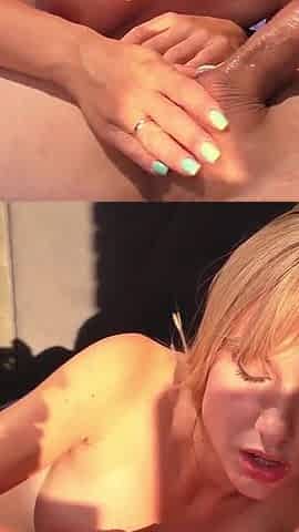 Amazing Blonde Passionately Sucks, Handjobs and Cum Swallow