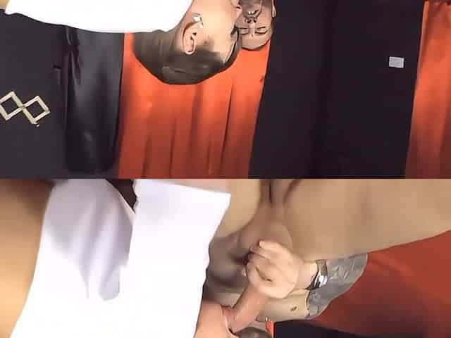 Masturbating in front of her stepbrother whilst that guy takes a shower