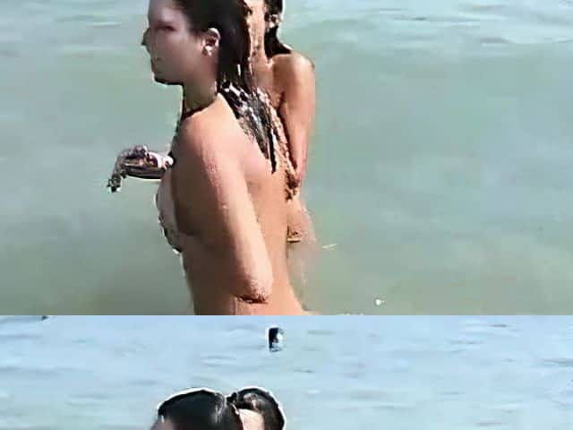 Nude beach voyeur video of hot playful nudists in water