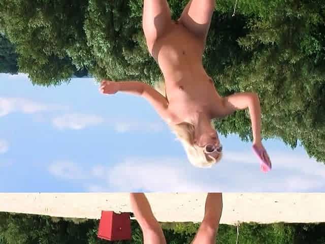 Woman Takes A Sun Naked On Balcony And Playing With Hersef When People On The Street Below. Public