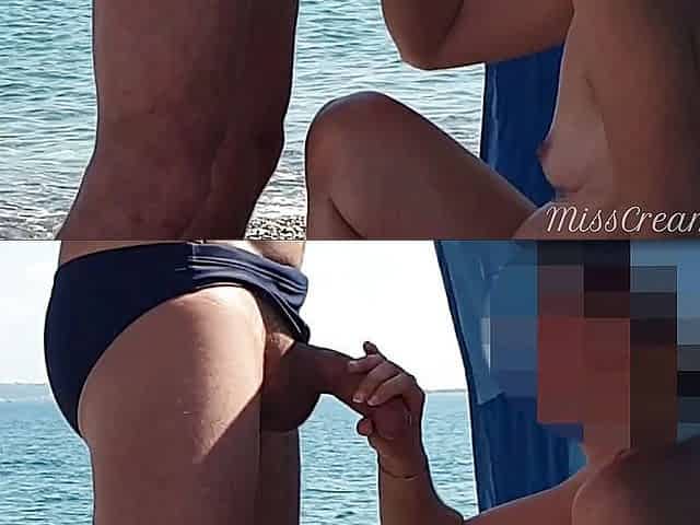 Risky outdoor blowjob on the beach with cumshot - MissCreamy