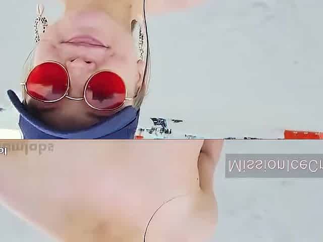 Horny married woman in public nudity records video having fun on the beach