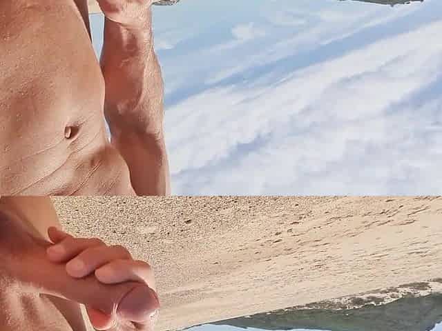 Showing off and wanking my large hard rod on a stripped beach - Eumesex