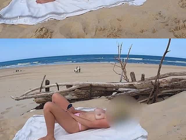 My Girlfriend Masturbates Naked At The Nudist Beach We Fuck In Front Of The Surfers Who Watch As The