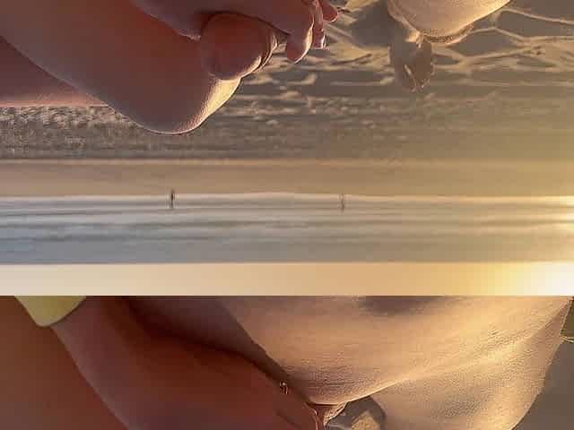 Wife jerks off and leaves with a body full of cum to watch the sunset on the beach