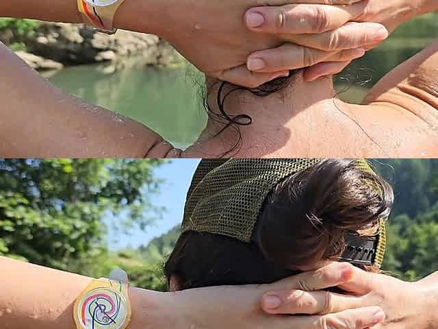 applying sunscreen to titties