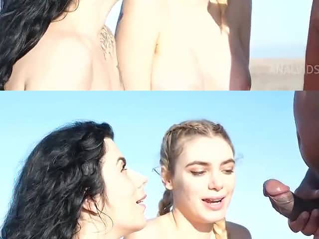 Naked, Euro Girls, Paola And Lily Started Kissing On The Beach And Had An Interracial Threesome