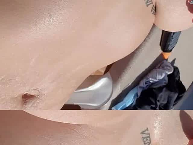 Sexy Jeny Smith poses naked. Covered with sticky tape
