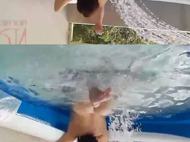 teen 18+ couple masturbates with the jet stream and she gets fingered in the sauna pool