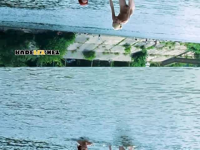 Nudist pair in the water