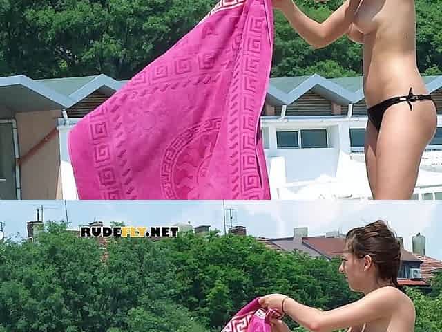 Hot nudist girl filmed by a voyeur with a hidden camera