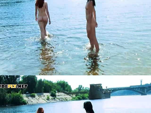 Hot nudist teen jumps in the water