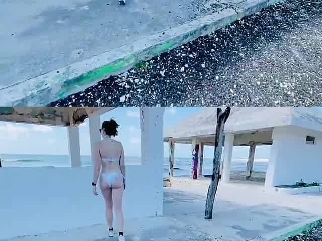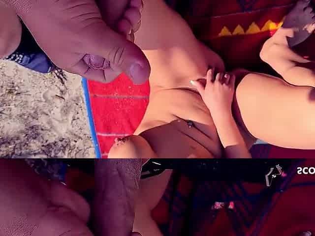 "After college 18 year old Pauline Cooper a slut with shaved pussy fucks a big cock with her pussy on the beach"