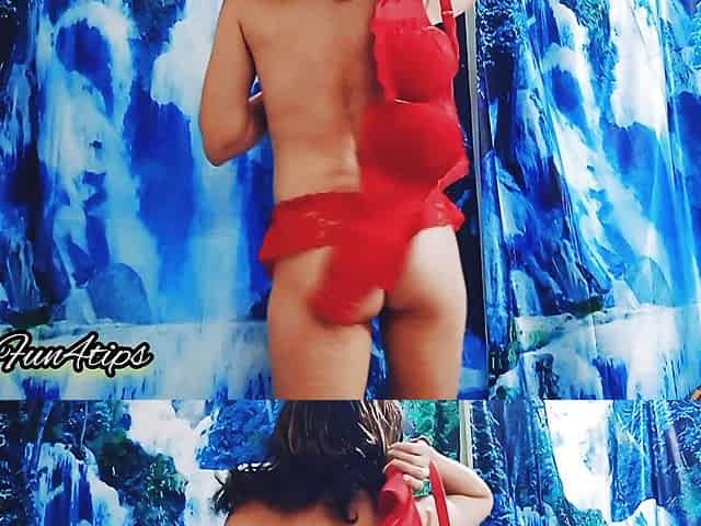 Slender Girl in Sexy Lingerie Changes into Tiny Bikini
