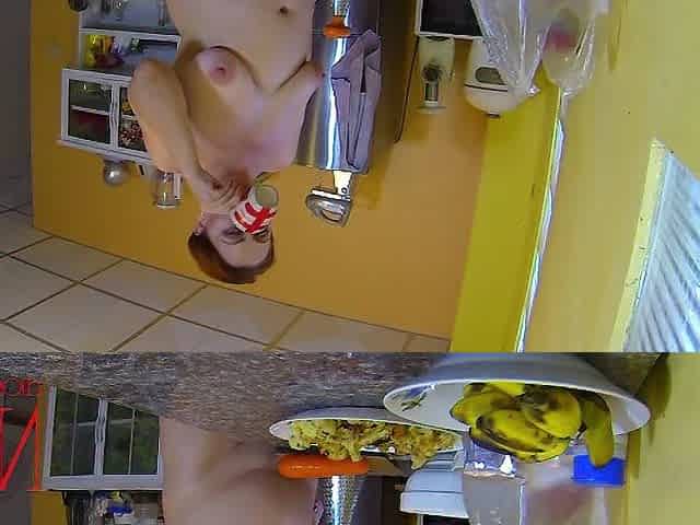 Nudist housekeeper Regina Noir makes a salad. Naked maid. Naked housewife. 2